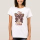 A brown beaded butterfly and a quote to fly free. No actual beads will be used on the t-shirt this is a digitally designed design.