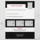 If you're looking to create your own flyer for promotional and marketing purposes and are looking for a fully customisable template, then this is perfect for your business needs. To ensure that the customisable fields are in the correct sequence, select the "customise it" button on this page. This double sided template has fields which enable you to type in your own wording and upload your own unique corporate logo and/or images. FRONT: The top and bottom are trimmed with horizontal black lines and the middle section has a white background. There is provision for you to upload 2 (two) photos to the top band and 2 (two) to the bottom band. Apart from your businesses operational details, the bottom right corner, which has a feint silver starburst allows you to include your business, email and website address. BACK: The back has the same black horizontal trim at the top and bottom with an additional one set approximately three quarters of the way down, on which 3 (three) image templates are set with a further image template situated on the top right corner against the black stripe. PAPER: A great paper at an affordable price. This 80lb text-weight, matte white paper is perfect for flyers, leaflets, brochures and mailings. Our value paper contains 50% recycled content. SIZE: 8.5" x 11" CUSTOMIZE IT: Change the style, colour and size of the font. Re-size and place the photo fields where required. Delete or add additional photos and wording. BLACK BORDER: Change to any colour of your choice.