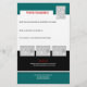If you're looking to create your own flyer for promotional and marketing purposes and are looking for a fully customisable template, then this is perfect for your business needs. To ensure that the customisable fields are in the correct sequence, select the "customise it" button on this page. This double sided template has fields which enable you to type in your own wording and upload your own unique corporate logo and/or images. FRONT: The top third of the brochure has a horizontal blue green (teal), thin white and broad black band, the middle third is stark white and the bottom band is the same blue green colour as the top. There is provision for you to upload 2 (two) photos to the top band and 2 (two) to the bottom band. Apart from your businesses operational details, the bottom right corner, which has a black and silver striped image with highlights your businesses name, has fields below it for you to include your business, email and website address. BACK: The top quarter has a blue green horizontal band, the middle quarter is stark white and the bottom half has a broad black, thin white and teal coloured horizontal stripe. The top right corner allows for 1 photo to be uploaded and half way down, 3 (three) image templates are set side by side. The top half of the former images are against the white background and the bottom half against the black background . PAPER: A great paper at an affordable price. This 80lb text-weight, matte white paper is perfect for flyers, leaflets, brochures and mailings. Our value paper contains 50% recycled content. SIZE: 5.5" x 8.5" CUSTOMIZE IT: Change the style, colour and size of the font. Re-size and place the photo fields where required. Delete or add additional photos and wording. BLUE GREEN BORDER: Change to any colour of your choice.