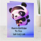 Pictured in a animated design is a flying baby panda happy its your birthday