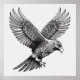 Flying Bald Eagle Black and White Art, Heart Wings Poster