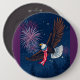 Flying Bald Eagle with USA Flag Scarf & Fireworks 6 Cm Round Badge
