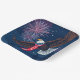 Flying Bald Eagle with USA Flag Scarf & Fireworks Paper Plate