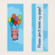 Featuring a digital illustration of pink pig using a bunch of multicoloured balloons to fly high into the cloudy blue sky.
