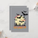 A invitation that says "Break from the Grind" with a Halloween image of bats flying up from a town in front of a glowing moon is a playful and spooky design, often worn by those looking for a break from their daily routine. It suggests a desire to escape the stresses of everyday life and embrace a more adventurous or thrilling lifestyle.