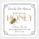 Dotted border with ornate frame with a realistic honeybee in flight and word "HONEY" printed in a metallic gold gradient.