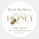 HONEY is written in a Metallic Gold font. Flying bee.