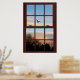 Enhance the decor of any room with this picturesque poster. The artwork creates the illusion of having a window on your wall. This realistic view of a bird flying at sunset gives the illusion of looking out of the window. The original artwork is 24" x 36" which is the average poster size and was created at high resolution (300 dpi) so it prints out beautifully.