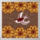 Flying Bird with Flowers Damask Pattern Poster