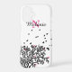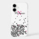 Decorative and elegant personalized phone case with illustrated tree and flying birds image embellished with pink blossom to compliment your initial.