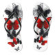 Flock of flying, realistic, red and black morpho butterflies on white background with drops of paint.