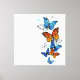 Flying, bright, blue butterfly morpho and orange monarch butterfly on a white background. Morpho. Monarch butterfly. Design with butterflies.