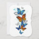 Flying, bright, blue butterfly morpho and orange monarch butterfly on a white background. Morpho. Monarch butterfly. Design with butterflies.