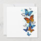 Flying, bright, blue butterfly morpho and orange monarch butterfly on a white background. Morpho. Monarch butterfly. Design with butterflies.