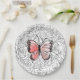 Pink Butterfly Flying In Roses Paper Plates - MIGNED Art Painting - Customizable