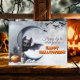 Spread some Halloween cheer with this adorable and spooky bat-themed postcard! Featuring a cute bat peeking from behind a crescent moon, surrounded by festive elements like pumpkins and potion bottles, this postcard is perfect for sending Halloween wishes to friends and family. The whimsical design and playful message, "Flying by to wish you a Happy Halloween!" add a touch of fun to your seasonal greetings. Whether you're sending it to a loved one or adding it to your Halloween decor, this postcard is sure to bring a smile to anyone's face. Get yours today and make Halloween extra special!
