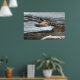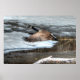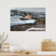 Flying Canada Goose and Winter Pond Wildlife Poster