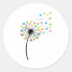 Colorful birds drift through the air like dandelion seeds, creating a light and joyful nature scene with gentle movement and a playful mood.