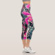 FLYING CRANES WAVES,FLOWERS Pink Japanese Floral Capri Leggings