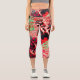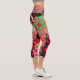 FLYING CRANES WITH SPRING FLOWERS Red Black Capri Leggings