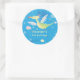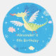 A charming sticker featuring a whimsical, flying, fire-breathing dragon. Perfect for children's birthday parties, baby showers and more. The sticker is easy to customise with your wording, font and font colour.
