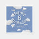 This easy-to-personlize paper aeroplanes themed paper napkin for a boy's or girl's birthday party features various illustrated folded white paper aeroplanes with whimsical curvy dashed-line flight trails amongst puffy white clouds on a customisable blue background - personalise with your party details - by katz_d_zynes