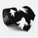 Flying ghosts Halloween neck tie. Black and white novelty design for the spooky holiday season has big white ghosts printed over a black background.