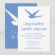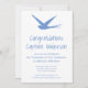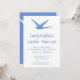 Elegant blue and white invitation card to celebrate the promotion of an airline pilot or a new graduate from flight school. White swallow against a blue sky. All texts are fully customisable.