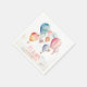 Baby shower enchanting Watercolor Flying Hot Air Balloons baby shower "it's a girl" red text napkin. This whimsical design showcases colourful hand-painted style hot air balloons drifting among fluffy cloud. The delicate watercolor style with soft pastel colours sets the stage for a joyful celebration. With customisable details for you to add your baby name, this theme allows you to create a personalised and memorable experience for your friends and family.