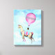 A whimsical, flowered llama takes flight, with the help of a vintage hot air balloon. Great design for a child's room or nursery, or as a baby shower gift!
