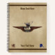Pilot's wings as worn by those at mythical Flying Moose Aviation in Talkeetna, Alaska. Depicts the head of a moose wearing a leather aviator's helmet and goggles above wings bearing text reading "FLYING MOOSE AVIATION." There are two places for you to add your own additional text.