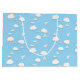 This fun gift bag features various illustrated folded white paper aeroplanes and their flight trails with puffy clouds on a sky blue background - background is shown in blue but can be customised to any colour that contrasts with the white graphics in the design - by katz_d_zynes