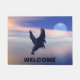 Awesome picture of a silhouette of a flying Pegasus in the sky, is featured on this door mat. A great way to greet visitors with a "WELCOME" and sturdy latex action backing allows for a non-slip grip. This mat resists fading, mould and mildew and is decorated in the USA. Use yourself or give as a housewarming gift!