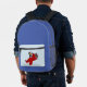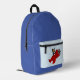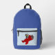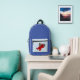 Backpack with design with an illustration of a penguin flying a red plane; illustrated by Radka Kavalcova / MaxiHarmony