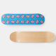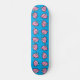 A skateboard featuring an adorable repeating pattern of a flying pink pig on a vivid blue background.