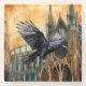 A flying raven overlooks a mediaeval cathedral, built in the Gothic style