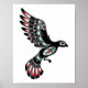 This unique design features a Haida inspired flaying bird. The Native pattern depicts a tribal bird design that is comprised of flowing lines and elegant shapes. The birds wings flow up the side of the pattern with its tail hanging down below. A small fish appears in a circle inside the birds stomach. This beautiful pattern is a stylish representation of this wonderful flying creature.
