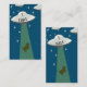 Fun retro sci fi gift table number cards with flying saucers and one with a light beam bring up a cow.