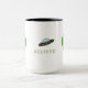 A funny mug with green alien heads, flying saucer and a customizable message "Believe"! Perfect for a geek breakfast!