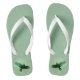 This pair of flip flops are green with my altered photograph of flying see through black crow with it wings spread with tree tops visible behind the crow on the heels of each flip flop.