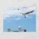 Flying Sitting Seagulls Birds Blue Sky Postcard