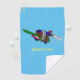 The golf towel exceeded my expectations! My husband actually approved of it! He liked the picture quality, thickness and overall usefulness of the golf towel I ordered to commemorate his lowest ever golf score. He liked it so well that I ordered 8 more towels with photos of his home golf course. Each one of the eight has the name of one of his golf group members. I will give them as party favors at my husband's 70th birthday party later this year. The different names were easy to add because the Zazzle template is so very easy to use. The colors were bright and authentic in all 9 of the towels that I made. The one of the 9 that I ordered has come out of the wash and line dry looking great.