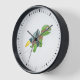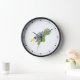 The size of the clock is dramatic and the abstract alcohol ink design is soothing and intricate at the same time. I chose the black frame that adds pop to the blue and gold design. The gold printing would be better in a slightly darker or larger font. I love it and I’m looking for just the right place in ny new apartment. I would recommend this clock for a personal gift or a present. I feel that the quality is excellent for the money! I’m a bit of a clock nut so I’m pretty particular about my purchases. The clock is larger in diameter than many if the clocks I have, so it stands out very well. I think a slightly darker printing color and a moderately larger size would best suit a professional decor or add more impact in a work place item.