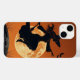 Classic Halloween design featuring a witch flying on her broomstick across a glowing orange moon. The bold retro cartoon silhouette style makes this accessory festive and timeless. A must for witchy Halloween vibes.