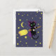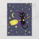A black cat flies through the night on a witch's broom while wearing her hat! This design is perfect for Halloween decorations! Customise or personalise it by adding your own text or images.