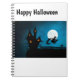 a witch flying on her broomstick past the full moon with a dark house in the background and a cat on the fence