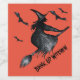 Flying witch on her broomstick saying "Drink Up Witches". Halloween orange and black with added bat flying details. Perfect for a Halloween Party to remember.