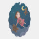 A cute illustration of a girl flying with gingerbread cookies in snowy night sky