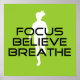 Focus Believe Breathe running apparel including T-shirts, tank tops, hoodies, track jackets, long sleeve tees, and gifts including mugs, magnets, buttons, tote bags, luggage tags, wall clocks, key chains, and much more with a white silhouette female runner and black text design. Great for anyone who loves running, is training for or has already run a 5K, 10K, marathon, or half-marathon!