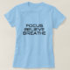 Focus Believe Breathe running apparel including T-shirts, tank tops, hoodies, track jackets, long sleeve tees, and gifts including mugs, magnets, buttons, tote bags, luggage tags, wall clocks, key chains, and much more with a white silhouette female runner and black text design. Great for anyone who loves running, is training for or has already run a 5K, 10K, marathon, or half-marathon!